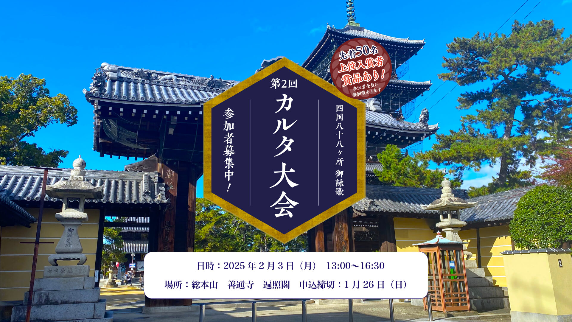 | 開催場所 | 総本山 善通寺 遍照閣 ※香川県善通寺市善通寺町3丁目3-1 |